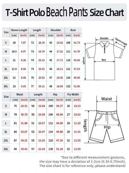 3D Digital Printed Men's 2 Piece Sets Polo Shirt+Shorts Streetwear Casual Short Sleeve Zipper Shirt Male Beach Trunks Men Outfit